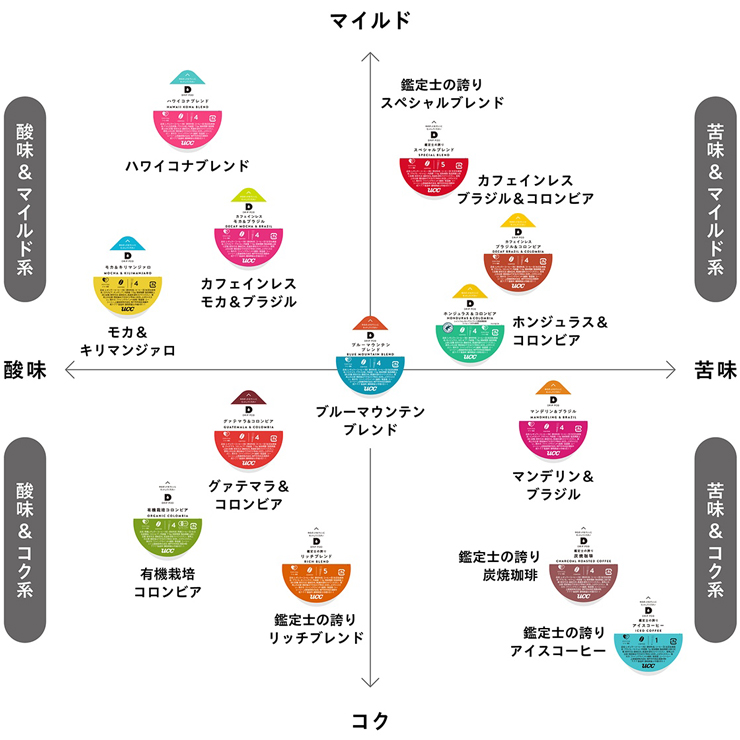 DRIP PODはコーヒーを初め、緑茶や紅茶など様々なラインナップがあります。ぜひ、お気に入りの1杯を見つけて下さい。