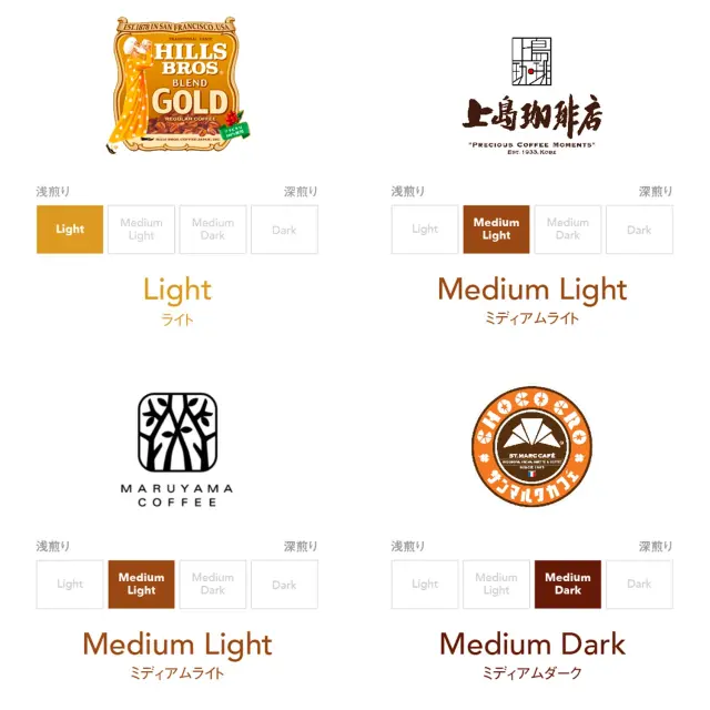 セット内容:KCUP(ヒルス ブレンドゴールド、上島珈琲店 オリジナルブレンド、サンマルクカフェブレンドコーヒー、丸山珈琲のブレンド)