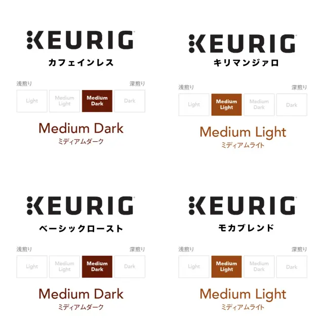 セット内容:KCUP(ベーシックロースト、モカブレンド、キリマンジァロAA100%、カフェインレス)