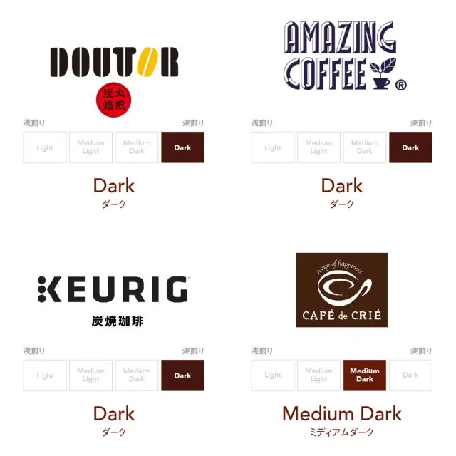 セット内容:KCUP(炭焼珈琲、カフェ・ド・クリエ ホームブレンド、AMAZING COFFEE ドリップカプセル、ドトール 炭火焙煎)
